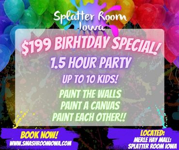 Book your Childs Birthday Party at Splatter Room Iowa!